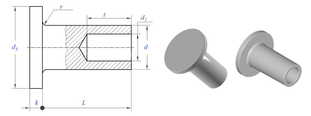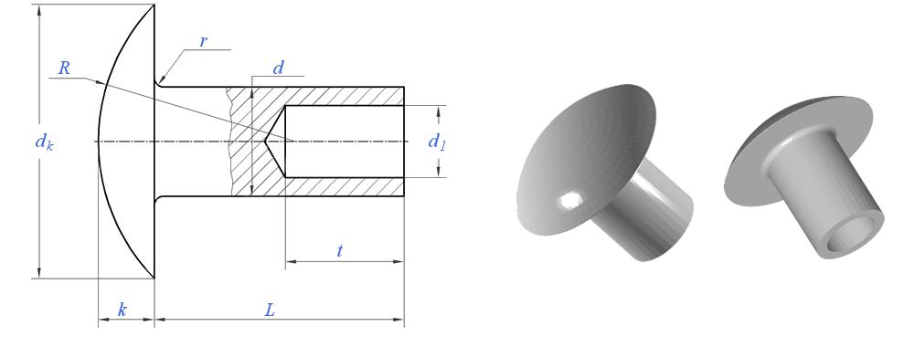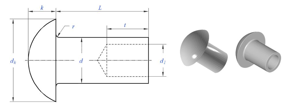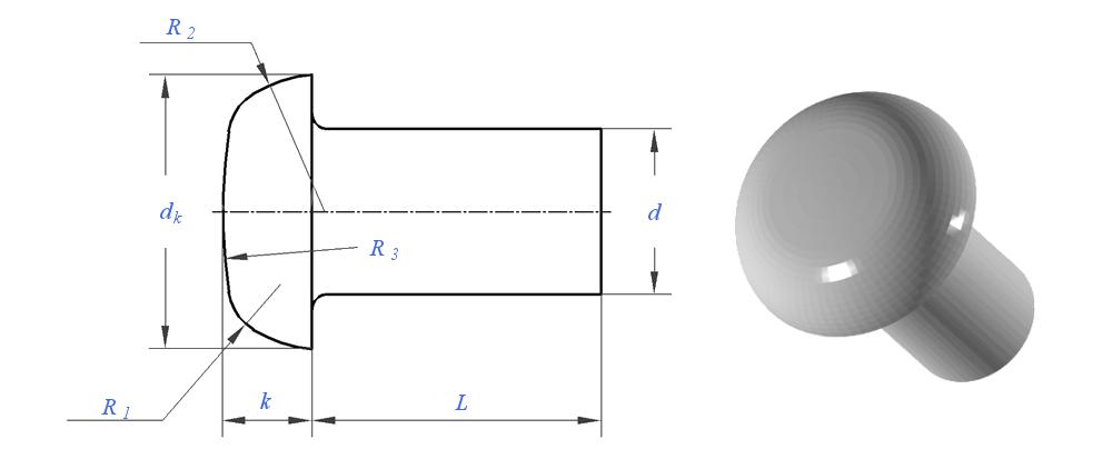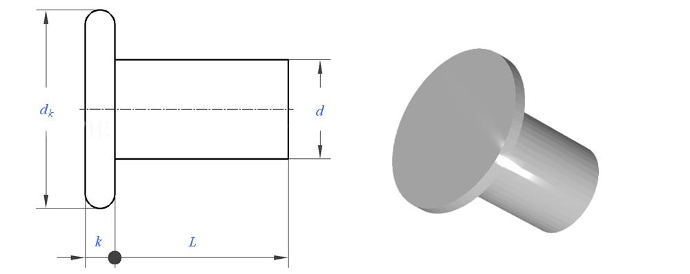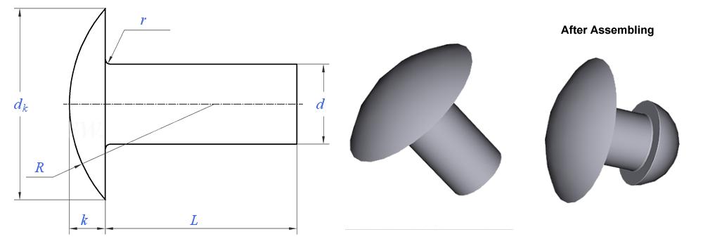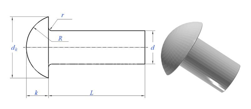 A rivet pepejal kepala kekuda Mempunyai kepala berbentuk cendawan rendah dengan diameter yang besar.