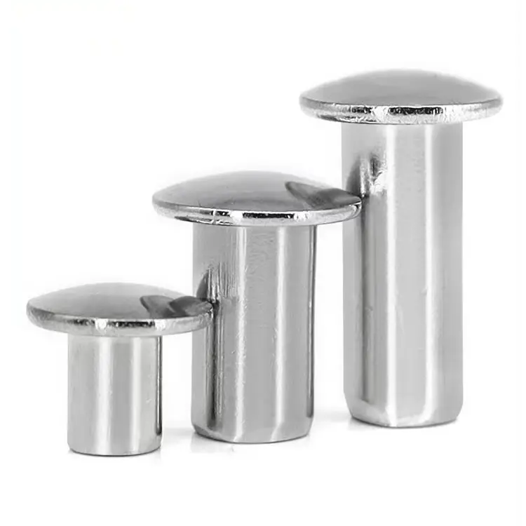 Rivet pepejal kepala pan Biasanya digunakan untuk menyatukan dua atau beberapa bahagian bersama -sama, ia memberikan rivet kepala bersama yang sangat kuat sering digunakan dalam kerja struktur berat di mana kekuatan rivet sangat penting.