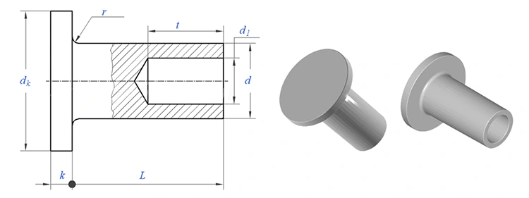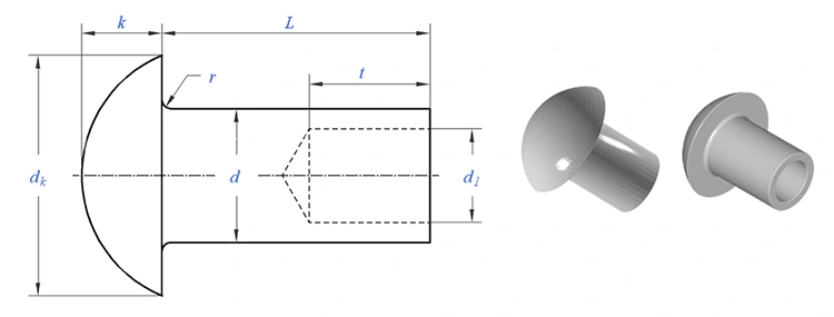 Rivet separuh berongga kepala bulat