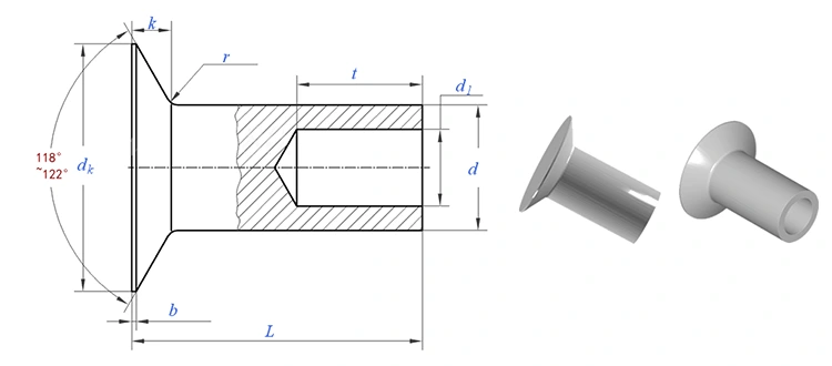 Rivet separuh berongga kepala countersunk